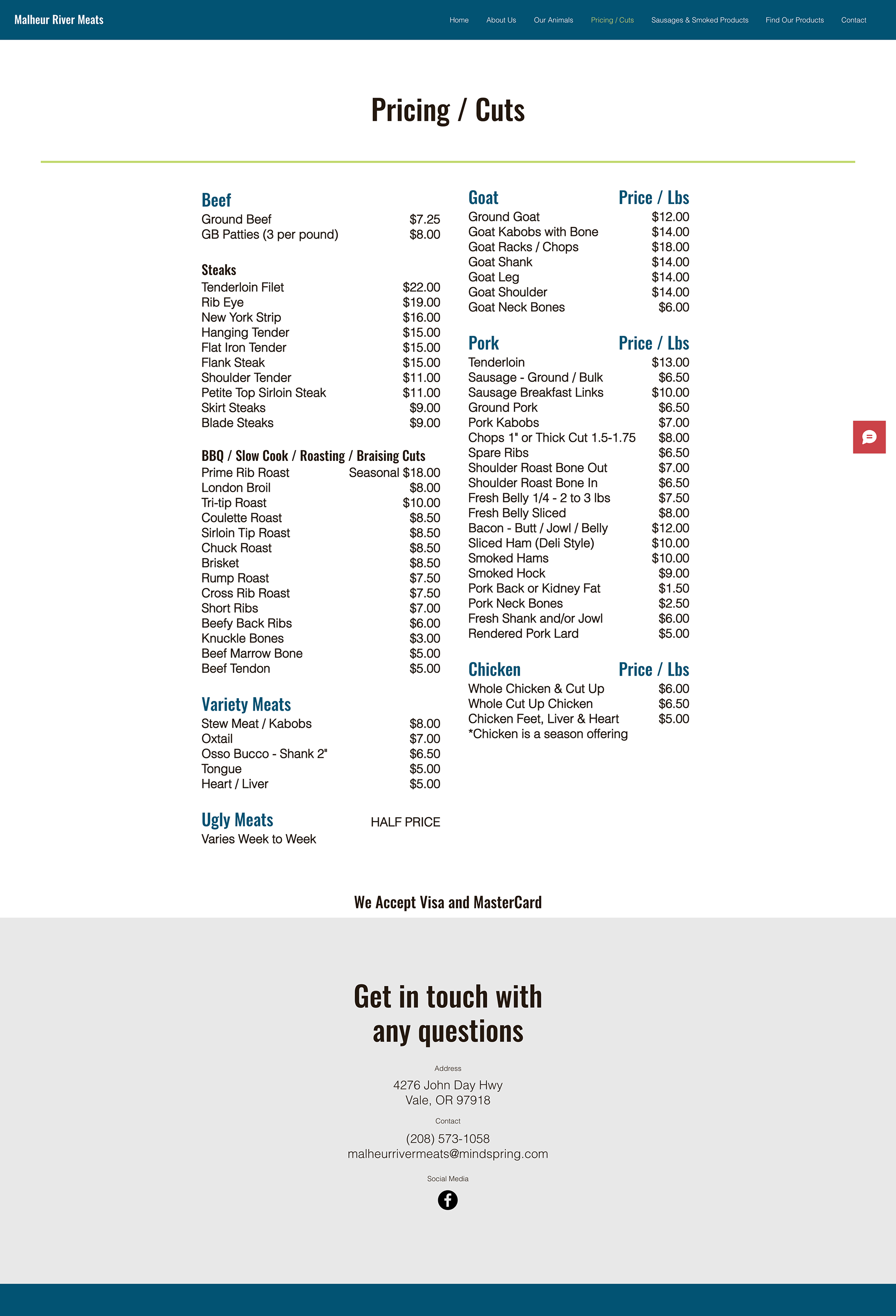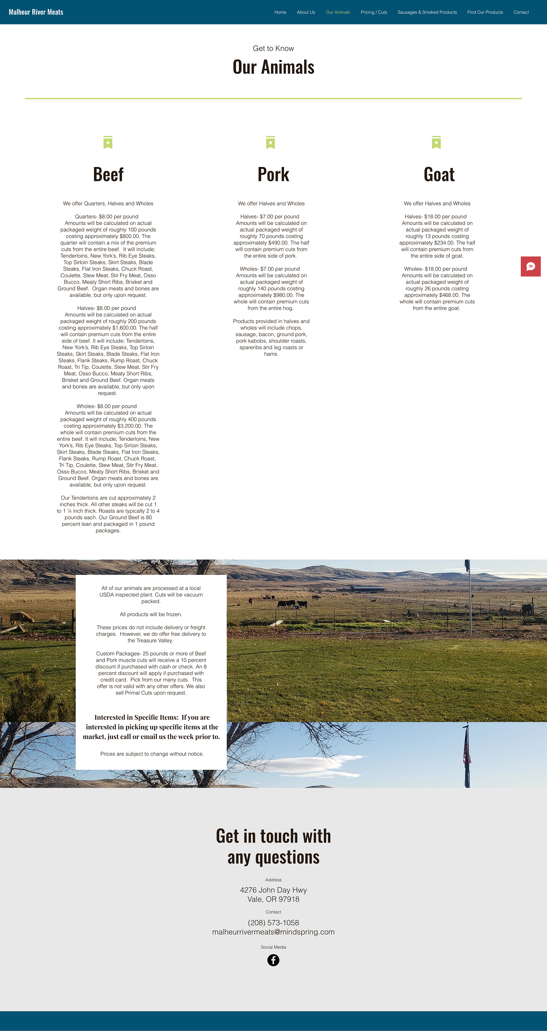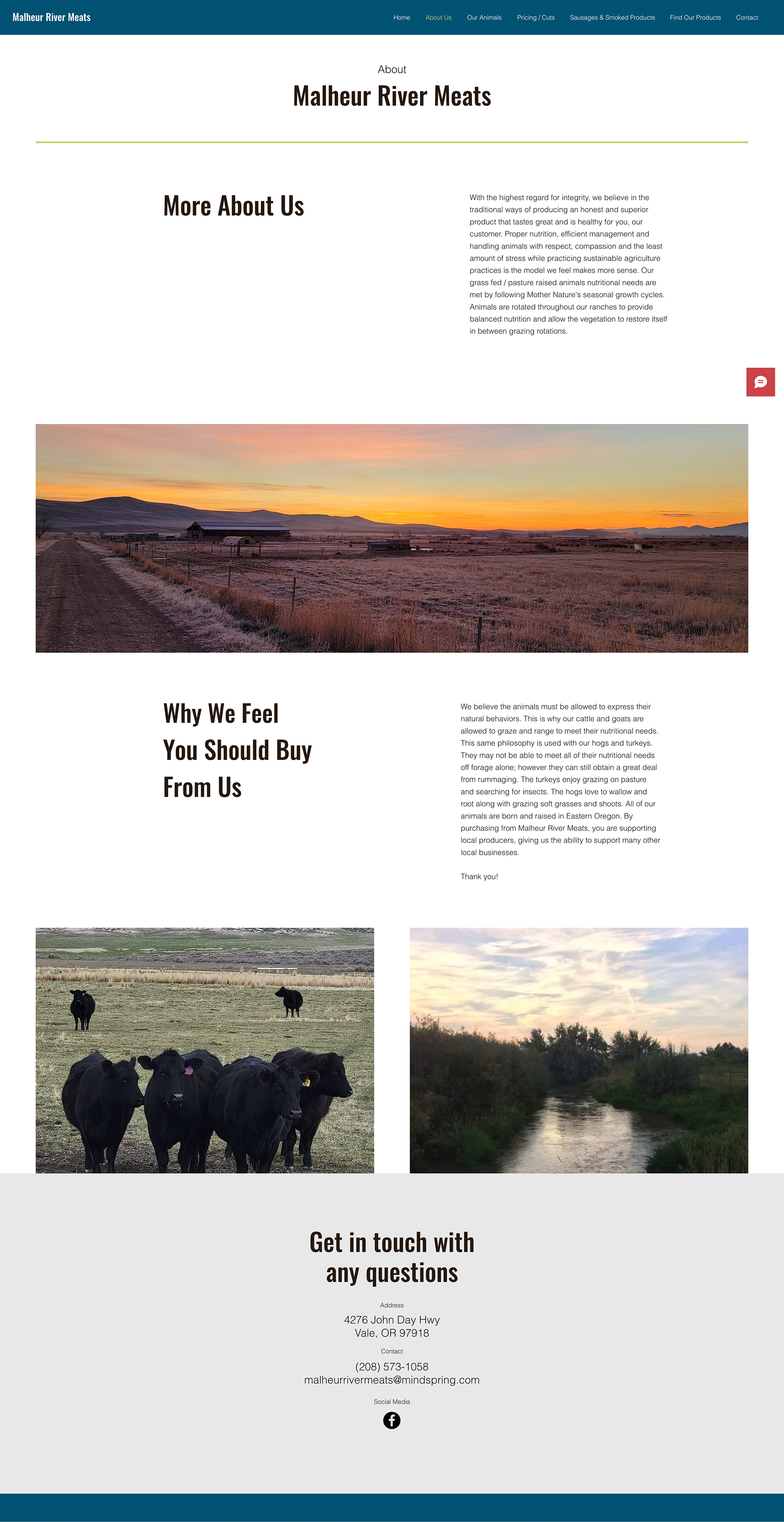 Development and execution of website for Malheur River Meats. https://www.malheurrivermeats.com/